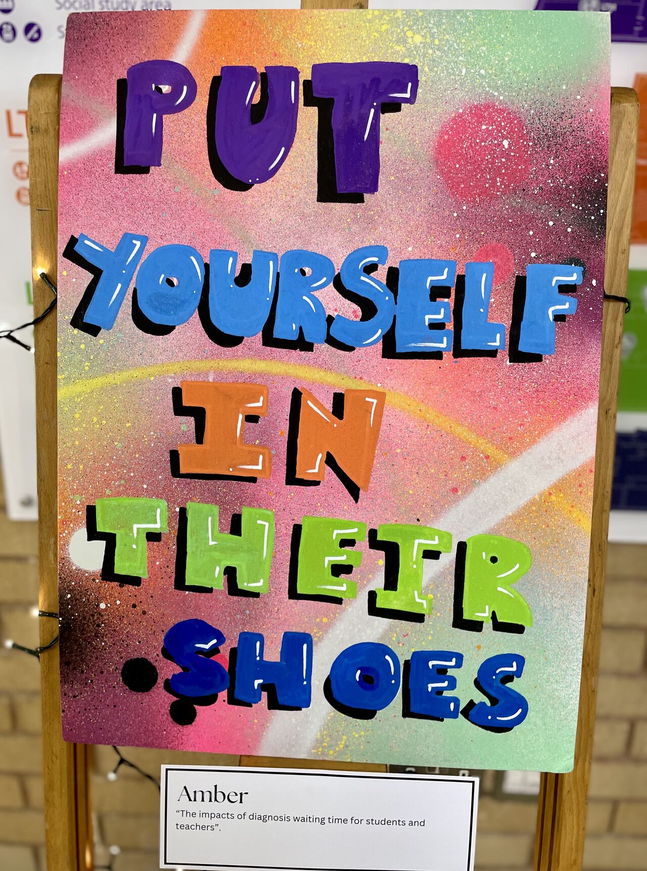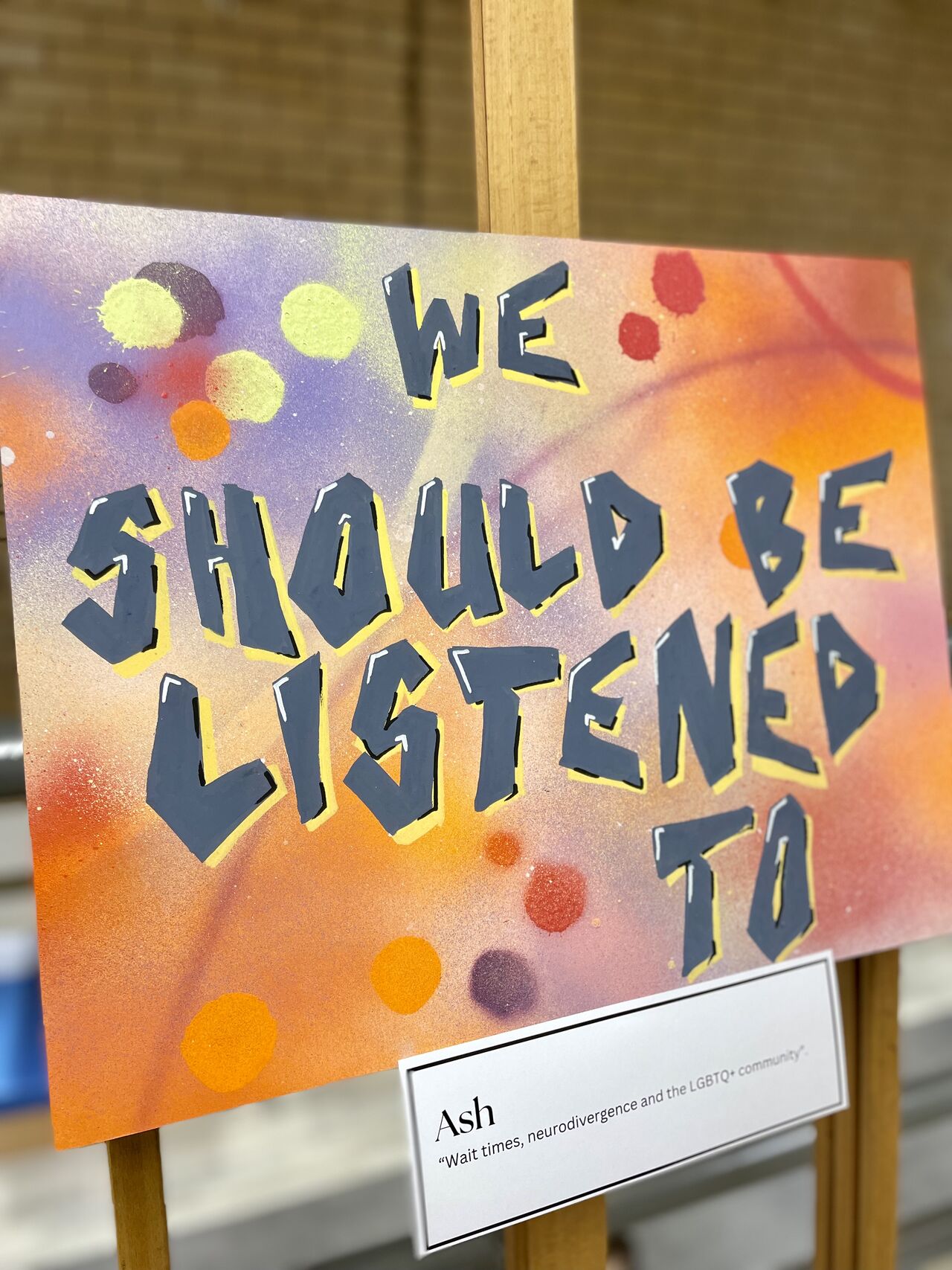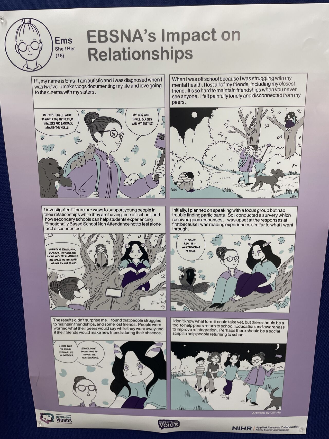We were delighted to join Surrey Youth Voice and the peer researchers for the ‘In Our Own Words’ exhibition at the University of Surrey in February 2025 to celebrate the work that the youth researchers have conducted and to highlight the themes they brought to life.